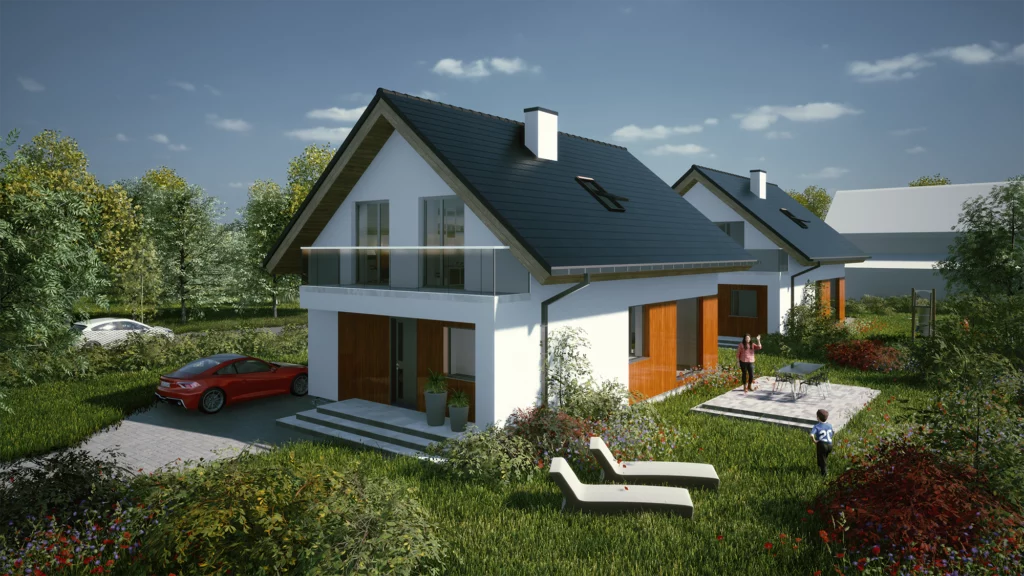 Nasze wizualizacje przeniosą Cię do zielonego, przydomowego ogrodu skąd wyjdziesz na widokowy taras, zachwycisz się pięknym widokiem i odetchniesz czystym powietrzem. Rzut parteru i poddasza zabierze Cię w podróż po funkcjonalnym wnętrzu, zaprojektowanym i wykończonym z myślą o komforcie przyszłych domowników.